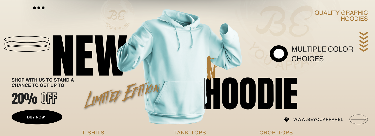 At BE You Apparel, we create stylish and comfortable fashion that lets women and girls express themselves with confidence. Our collectionโcrop tops, sweatshirts, hoodies, tank tops, hats, and t-shirtsโis designed to celebrate individuality.